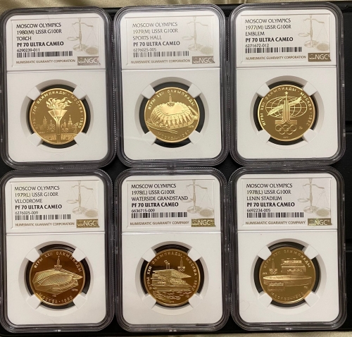 • НАБОР САМЫХ ВОСТРЕБОВАННЫХ ЗОЛОТЫХ МОНЕТ, НА РЫНКЕ НУМИЗМАТИКИ, ОТЧЕКАНЕННЫХ В СОВЕТСКИЙ ПЕРИОД ВРЕМЕНИ -ЭТО НАБОР ЗОЛОТЫХ МОНЕТ ОЛИМПИАДА 1980г. В КАЧЕСТВЕ ИСПОЛНЕНИЯ PROOF!!! ЗА ВЕСЬ ПЕРИОД ЧЕКАНКИ ДАННЫХ МОНЕТ В ПЕРИОД С 1977 ПО 1980 ГГ. БЫЛО ОТЧЕКАНЕННО 234 642 ЭКЗЕМПЛЯРА, ПРИЧЕМ, ТИРАЖИ У ВСЕХ МОНЕТ РАЗНЫЕ, СООТВЕТСТВЕННО НЕ ВСЕ НАБОРЫ ПОЛНЫЕ, ОДИН ЛИШЬ ЭТОТ ФАКТ УВЕЛИЧИВАЕТ НУМИЗМАТИЧЕСКУЮ ЦЕННОСТЬ ДАННОГО НАБОРА, А НАБОРЫ С ПРИСВОЕННЫМИ ГРЕЙДАМИ САМОГО ВЫСОКОГО НОМИНАЛА ОТ КОМПАНИИ NGC ВООБЩЕ ВХОДЯТ В РАНГ РЕДКИХ ВЕЩЕЙ НА РЫНКЕ НУМИЗМАТИКИ!!! НАША КОМПАНИЯ ПРЕДЛАГАЕТ ВАШЕМУ ВНИМАНИЮ НАБОР ЗОЛОТЫХ 100 РУБЛЕВЫХ  МОНЕТ ОЛИМПИДА 1980г., В СЛАБАХ NGC PROOF 70 ULTRA CAMEO !!! НАБОР ИМЕЕТ ПОВЫШЕННУЮ НУМИЗМАТИЧЕСКУЮ И ИНВЕСТИЦИОННУЮ ЦЕННОСТЬ и ВЕЛИКОЛЕПНЫЙ ПОТЕНЦИАЛ К РОСТУ В ЦЕНЕ В БУДУЩЕМ!!!