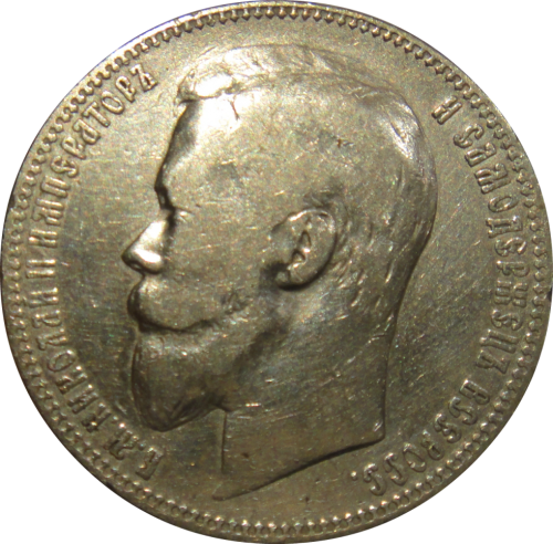 • Аверс: В центре профильный портрет влево императора Николая II. Слева надпись «Б.М. НИКОЛАЙ II ИМПЕРАТОР», справа - «И САМОДЕРЖЕЦ ВСЕРОСС.». По окружности канта имеются рельефные элементы, выполненные в виде зубцов.