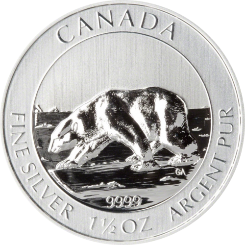 На реверсе изображен полярный медведь, идущий по льдине. Внизу расположены надписи: «CANADA», «9999», «FINE SILVER 1 1/2 OZ ARGENT PUR». Также на монете имеются инициалы дизайнера реверса «GA»
