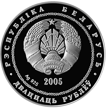 Аверс: в круге, обрамленном геометрическим орнаментом, – рельефное изображение Государственного герба Республики Беларусь, под ним указан год чеканки, для серебряной – проба сплава; по кругу надписи: в верхней части – "РЭСПУБЛIКА БЕЛАРУСЬ", в нижней – "ДВАЦЦАЦЬ РУБЛЁЎ" на серебряной и "АДЗІН РУБЕЛЬ" – на медно–никелевой.