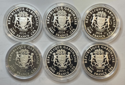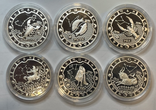Серебряные монеты 2000 франков Знаки зодиака 2014г., 31,1г., Ag 925, ПРУФ, ММД