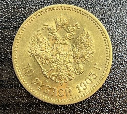 Золотая монета 10 рублей Николай II 1903г.,АР