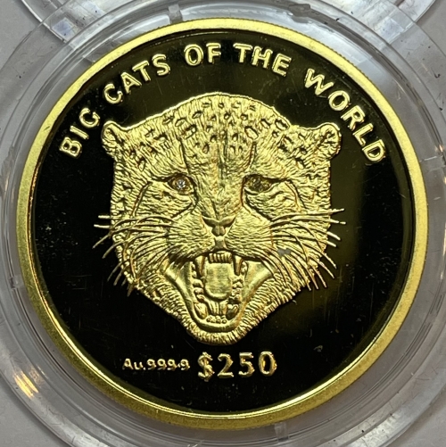 Золотая монета 250 долларов Гепард серия: Крупные кошки мира.,31,1г., 2001г.,Au 999,9 , Сьерра Леоне