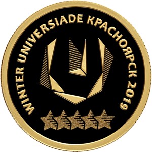Рельефное изображение логотипа XXIX Всемирной зимней универсиады, по окружности имеется надпись «WINTER UNIVERSIADE КРАСНОЯРСК 2019».