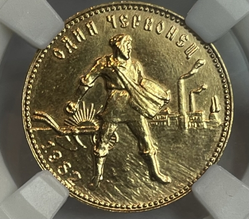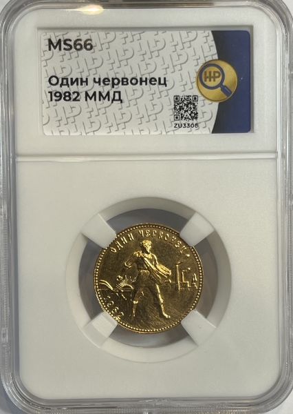 Золотая монета Червонец Сеятель 1982г. ММД в слабе ННР MS 66