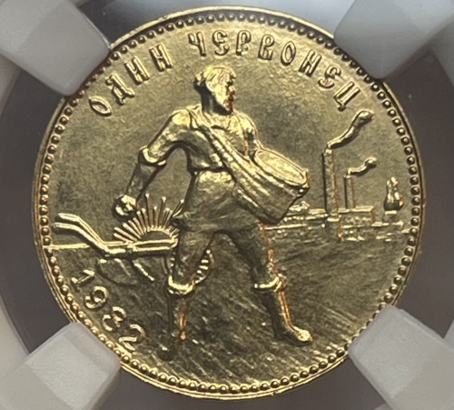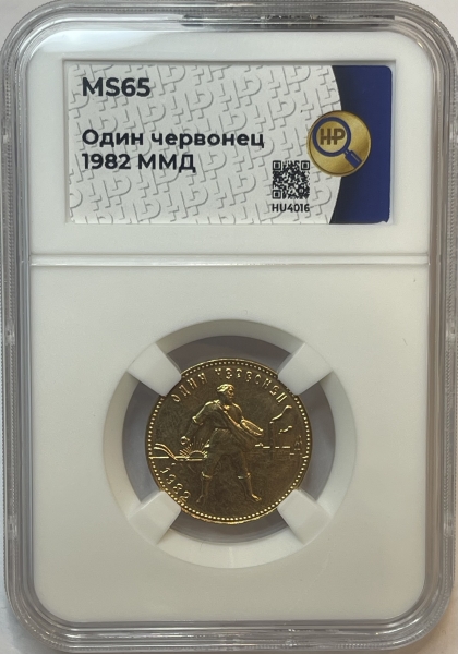 Золотая монета Червонец Сеятель 1982г. ММД в слабе ННР MS 65