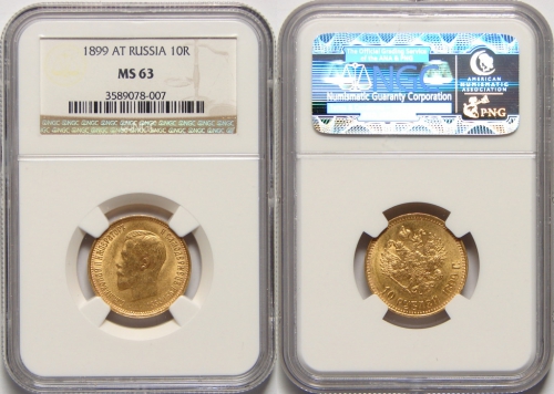 Вы всегда можете купить или продать, а также узнать текущую стоимость монеты - 'Золотая монета Николая II 10 рублей 1899 год состояние MS 63' в г.Махачкала (Дагестан). У нас Вы получите полную и необходимую консультация от квалифицированных специалистов и профессионалов, работающих на рынке инвестиций в драгметаллы уже долгое время. Мы стараемся предложить нашим клиентам лучшие цены выкупа и продажи на рынке (с минимальным спредом), а также гарантируем конфиденциальность всех проводимых сделок.
