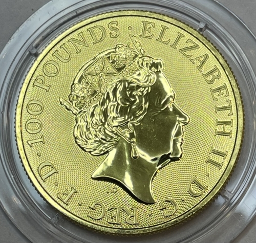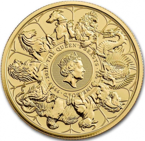 Золотая монета Великобритании "Десять Зверей Королевы" 2021 года 31,1 г